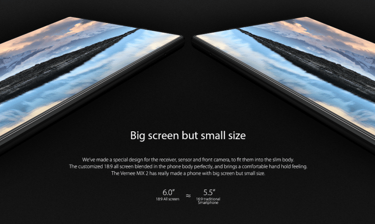 Grâce aux ratio d’affichage 18: 9, le grand écran de 6,0 “peut s’adapter parfaitement au boîtier du téléphone de 5,5”. L’écran 18: 9 personnalisé est mélangé dans le corps du téléphone et apporte une sensation de maintien confortable de la main. Vernee a vraiment fait avec son Mix 2 un téléphone avec un grand écran mais de petite taille.