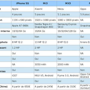 comparatif iphone 5c oppo n1 meizu mx3 xiaomi mi3